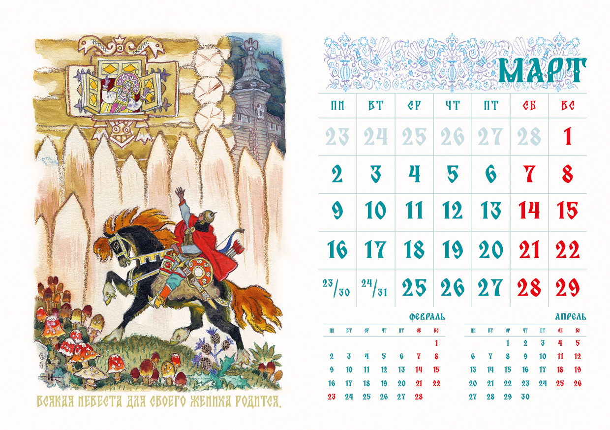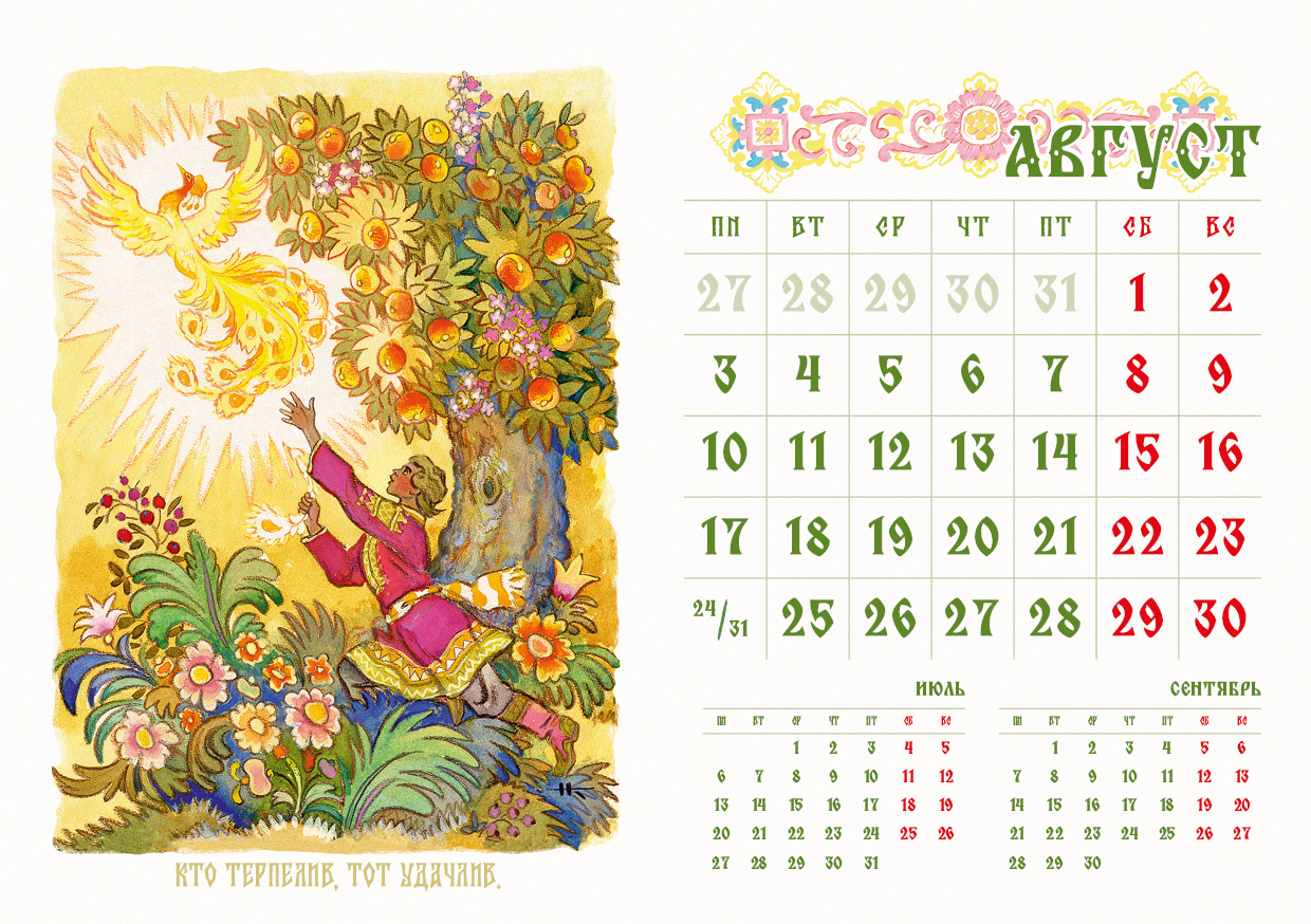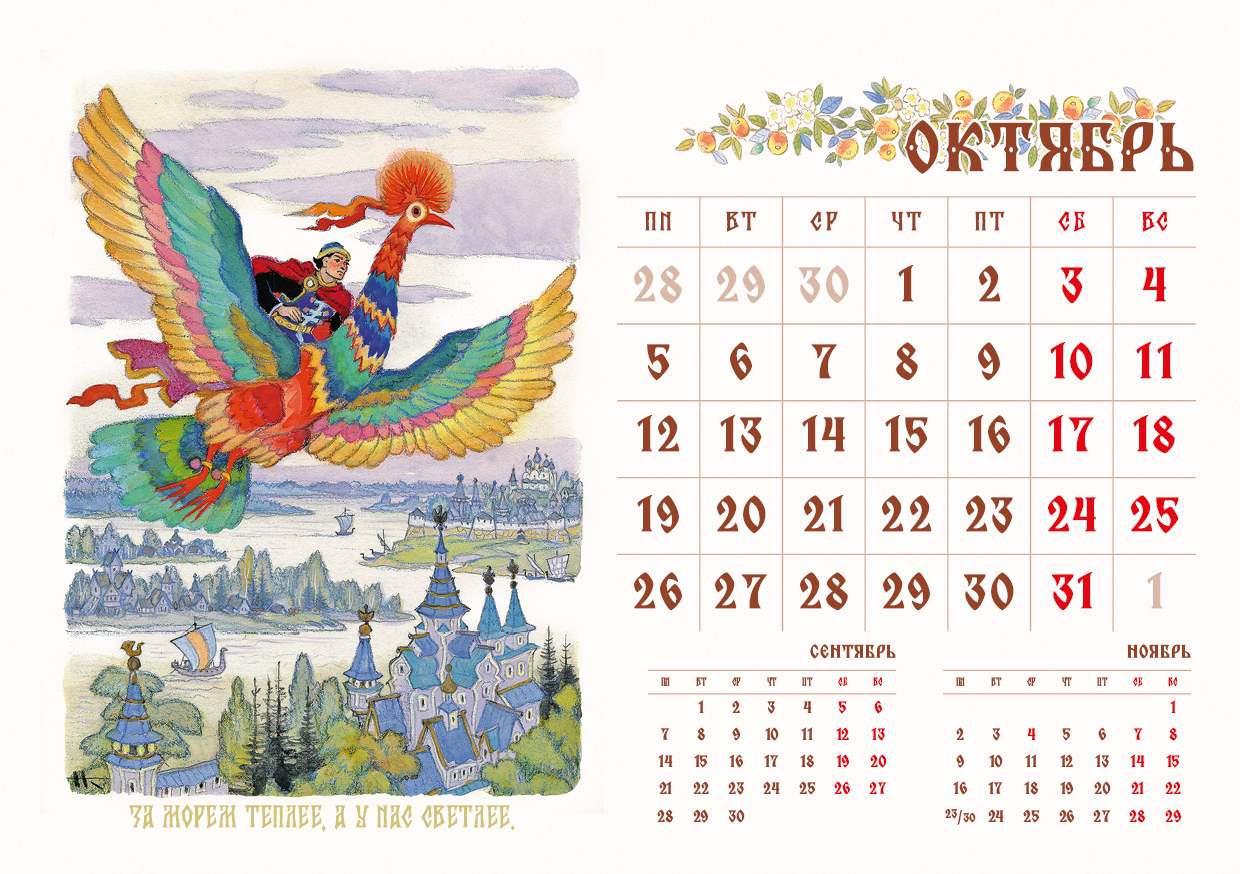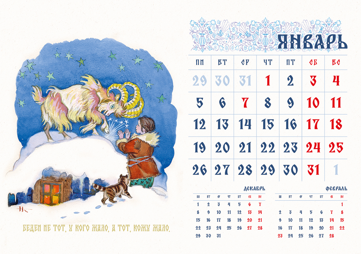 Мы с детства любим русские народные сказки: в них всегда торжествует добро, любому делу сопутствует удача, друзья подставляют плечо в самый нужный момент, волшебные помощники спасают от опасности. Календарь с роскошными иллюстрациями Николая Кочергина сделает вашу жизнь чуть более сказочной, ведь знакомые и обаятельные сказочные персонажи целый год будут вселять уверенность, что чудеса случаются! Календарь-домик украсит дом, офис или рабочий кабинет. Его удобно разместить на столе или на тумбочке. Календарь сделан из качественных материалов, он будет радовать вас весь год и станет прекрасным подарком для близких, друзей и коллег! |