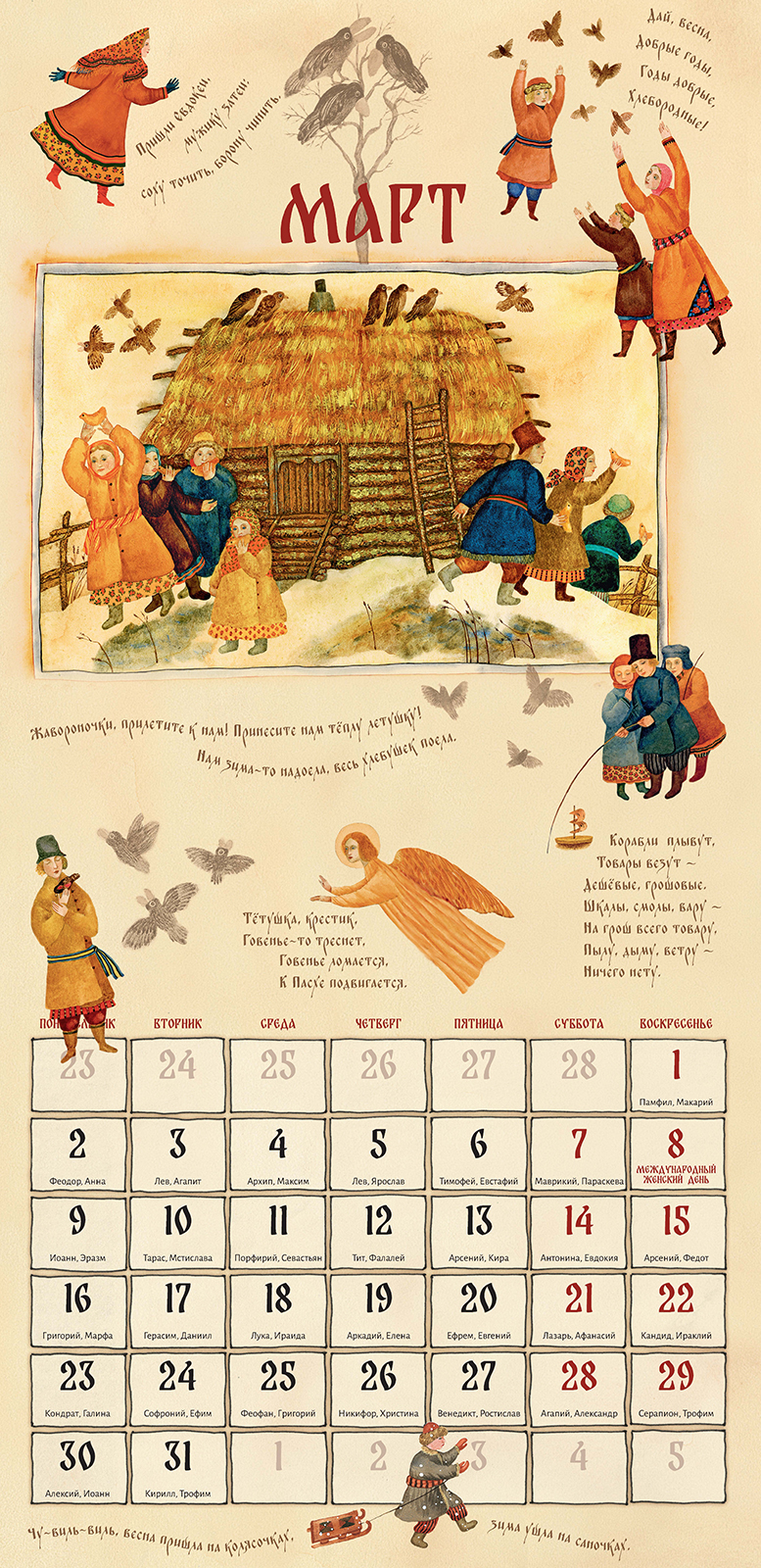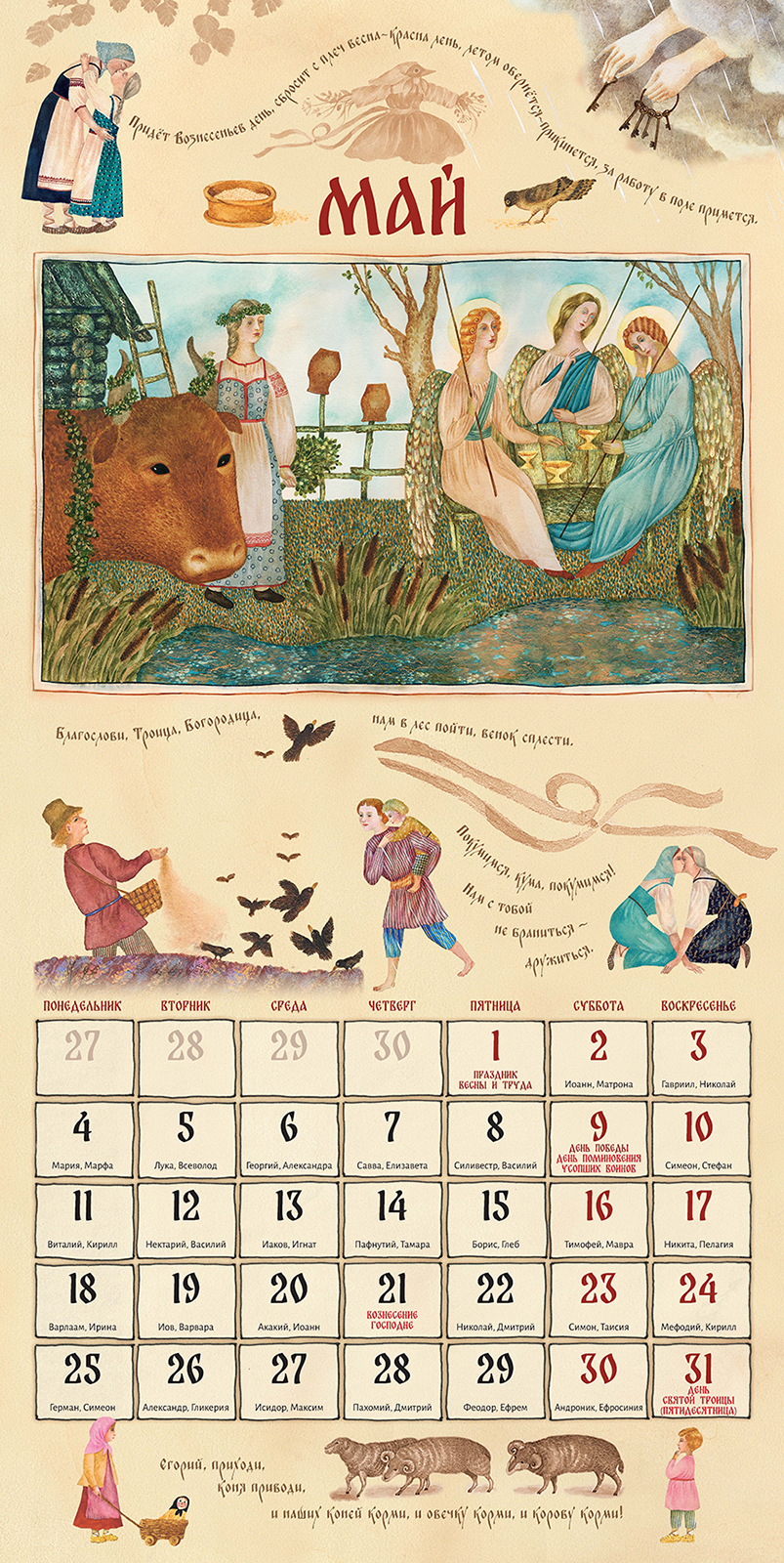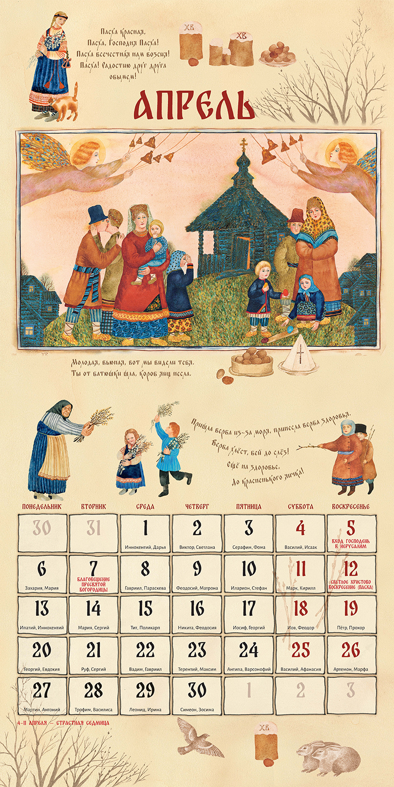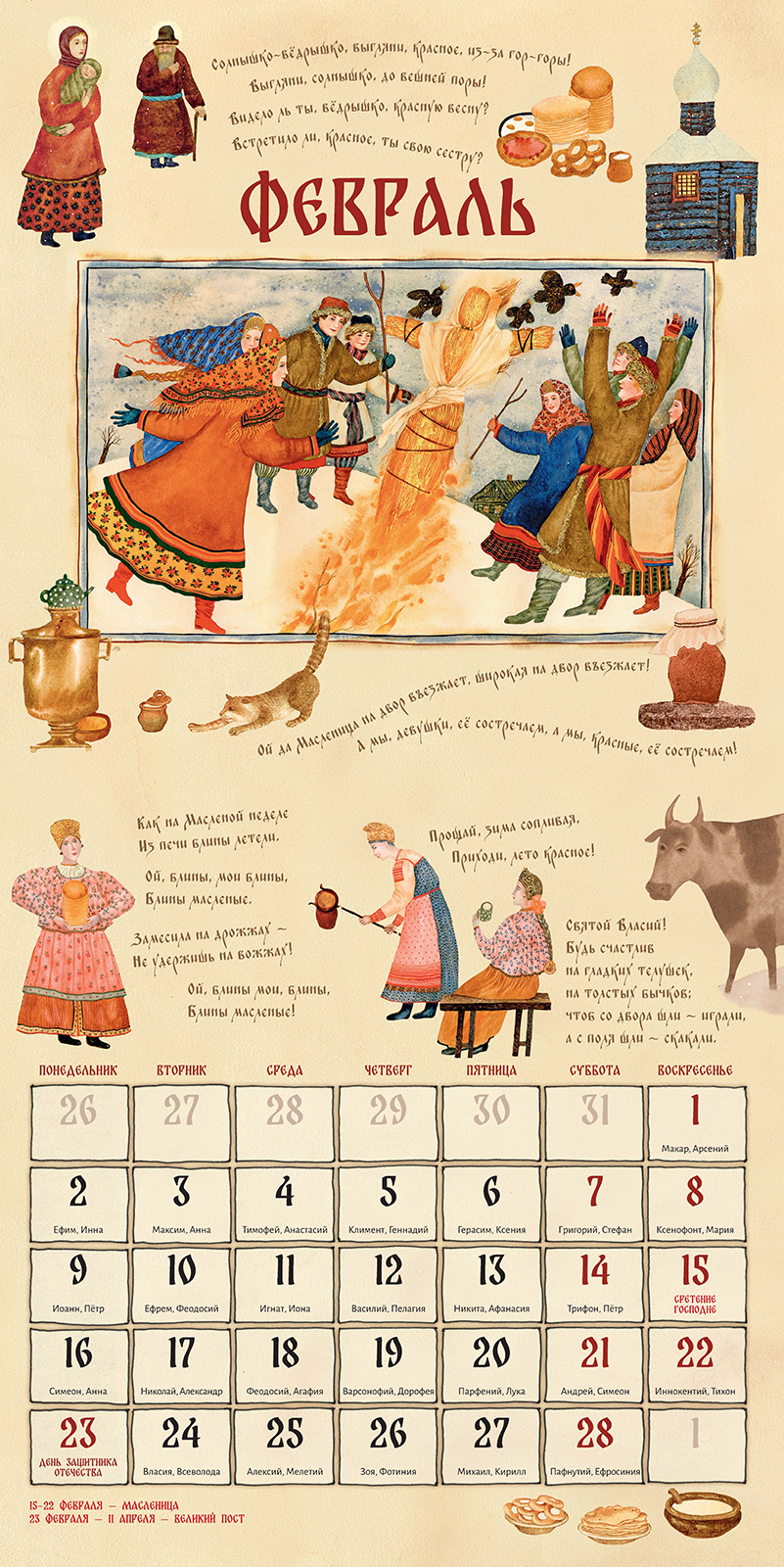 Праздник - это день радости, торжества и веселья, день освобождения от будничных забот и возможность вспомнить, что "не хлебом единым жив человек". Праздник объединяет людей, приобщает к народным ценностям, укрепляет связь между поколениями, рассказывая о традициях и обычаях. На Руси праздник считался главным событием в народной жизни. В праздничные дни отменялись все виды работ, кроме неотложных; люди собирались вместе для игр, плясок пения песен, накрывали на стол в ожидании гостей. И по сей день светлые праздники, светские и церковные, объединяют нас, оставляют яркие впечатления, дают нам чувство сопричастности и единения с историей и народом. Иллюстрации замечательной художницы Веры Павловой, словно окно в светлый праздничный мир, позволяют нам прикоснуться к традициям, дарят любовь, надежду и радость. |