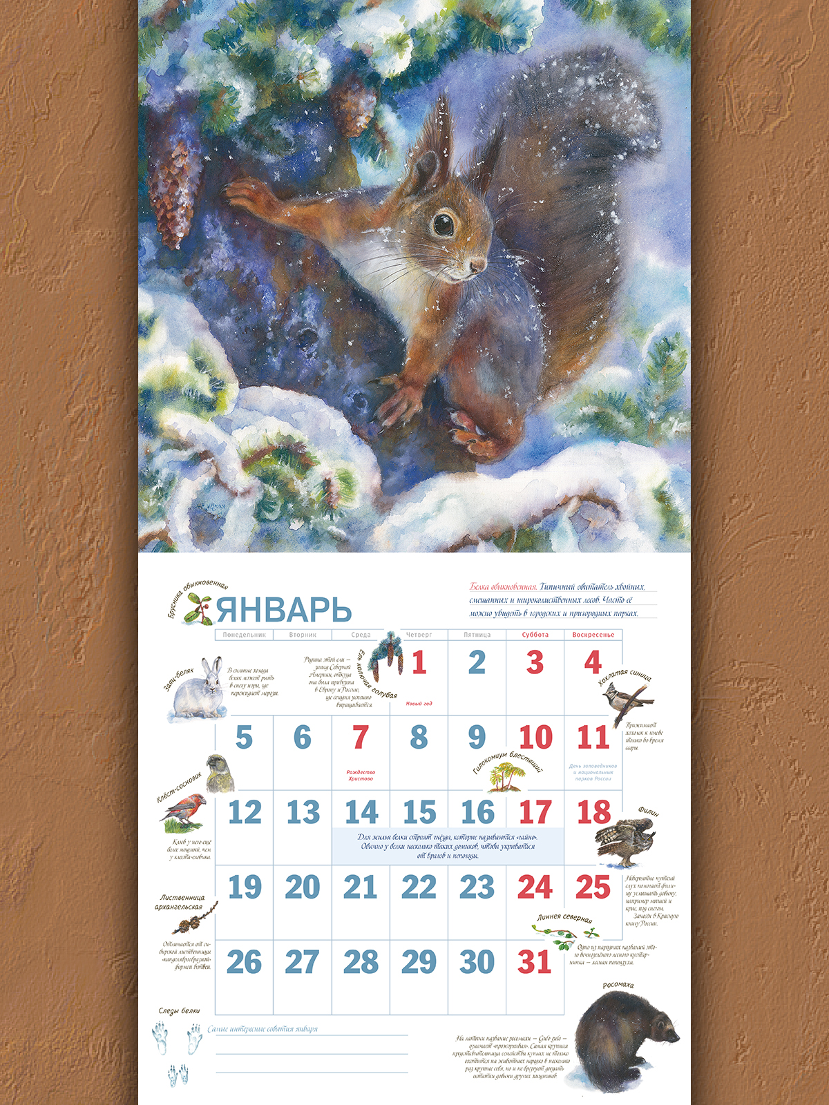 Отправиться в удивительное путешествие в мир родной природы очень просто! В этом календаре тебя ждет знакомство с самыми разными животными и растениями нашей страны: одних из них можно встретить в городском лесопарке, а других — в избранных уголках родного края. А еще можно стать настоящим исследователем: самому наблюдать за живой природой и записывать в календарь свои наблюдения. Добро пожаловать на экскурсию в природу! |