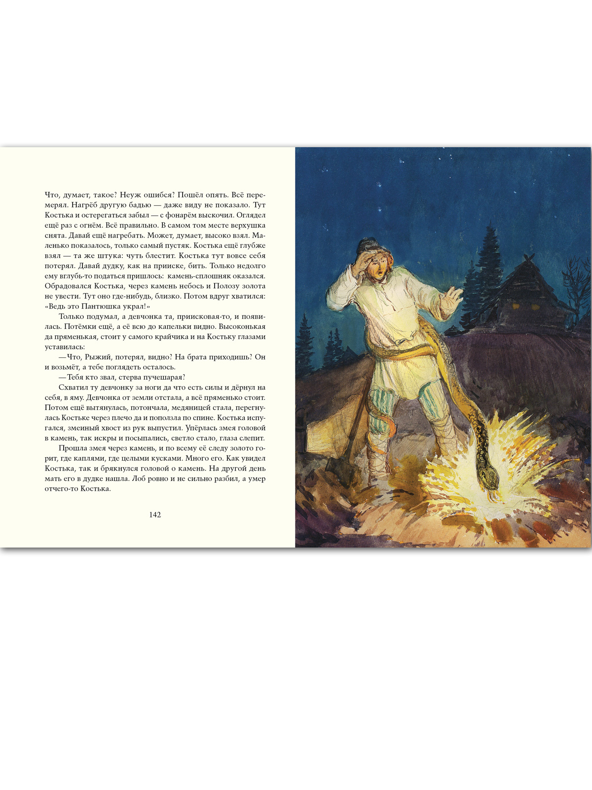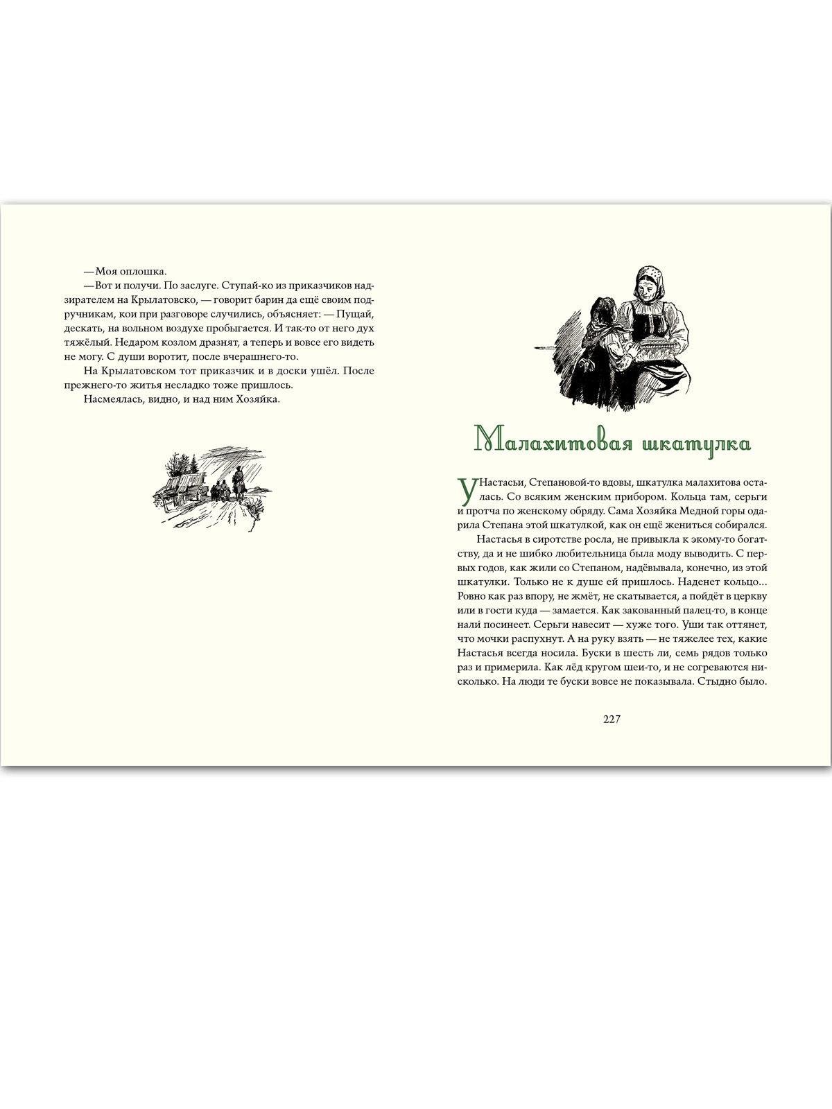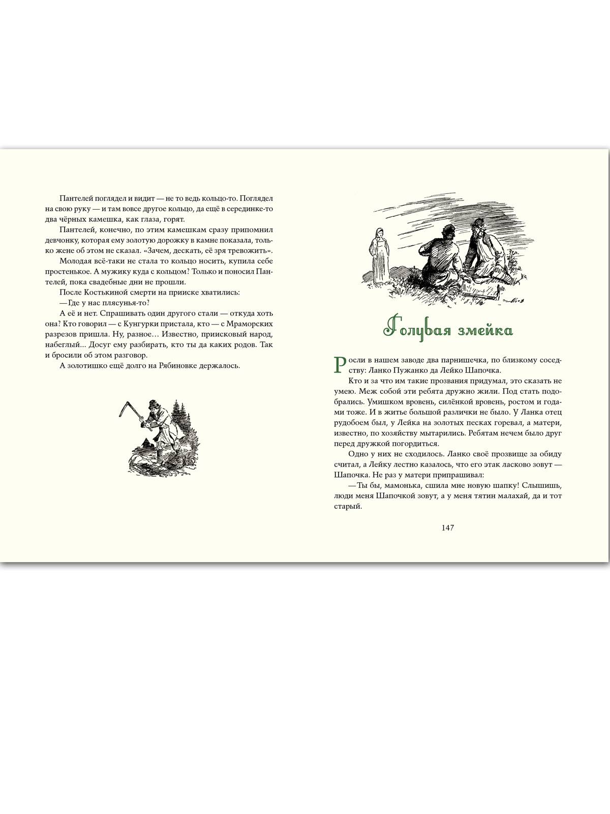 У сказов Павла Петровича Бажова был талантливый соавтор — неграмотный старичонка-караульный Полевского завода балагур-весельчак Василий Алексеевич Хмелинин. Взрослые дали ему два прозванья — Стаканчик и Протча, на которые тот откликался. А для детей — в их числе был и будущий писатель — он был «дедушкой Слышко»; детвора сбегалась к караулке на Думной горе послушать сказы о девке Азовке и Полозе, Змеиной горе и Даниле-мастере, о кладоискательских приметах, о всяких земельных богатствах… Старик рассказывал так, будто сам всё видел и слышал. Когда упоминались места, видные с горы, он указывал на них рукой. Но при этом, если просили рассказать сказку, говорил: «Только это не сказки, а сказы да побывальщины прозываются. Иное, слышь-ко, и говорить не всякому можно. Сопаской надо...» Полвека спустя П. Бажов гениально воспроизвёл побывальщины заводского караульного — по вешкам, которые сохранила память: остов сказа, стиль, отдельные названия, выражения. Помогли знание истории округа, близость родного местного говора, жизненный путь писателя, проходивший по тем же местам, где жил и слагал свои сказы дедушка Слышко. В настоящем сборнике собраны большинство знаменитых уральских сказов Павла Бажова. Иллюстрации выполнены в 1940-х годах художником Василием Баюскиным. Текст печатается по изданию: Бажов П. Малахитовая шкатулка. — М.: ОГИЗ, 1948. Для детей среднего и старшего школьного возраста. |