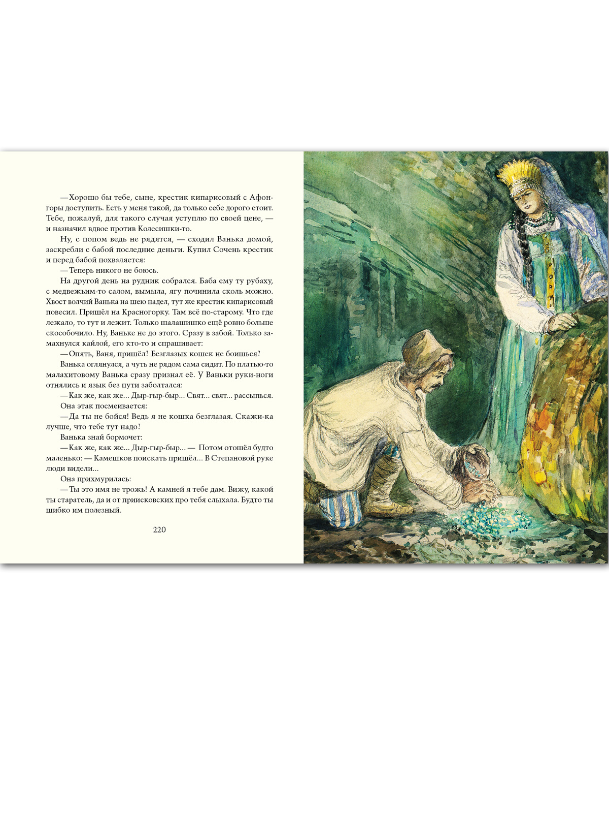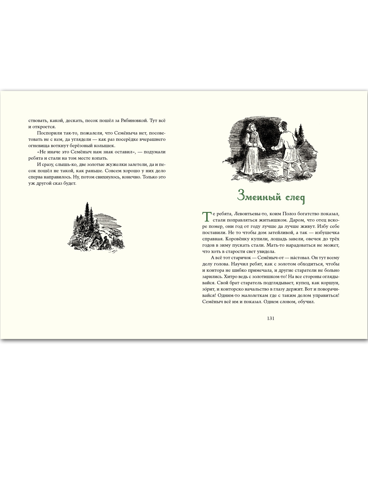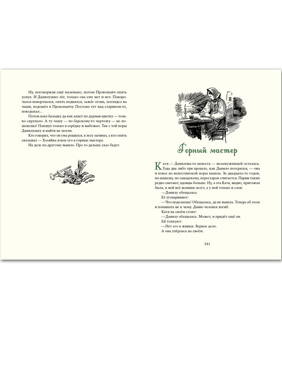 У сказов Павла Петровича Бажова был талантливый соавтор — неграмотный старичонка-караульный Полевского завода балагур-весельчак Василий Алексеевич Хмелинин. Взрослые дали ему два прозванья — Стаканчик и Протча, на которые тот откликался. А для детей — в их числе был и будущий писатель — он был «дедушкой Слышко»; детвора сбегалась к караулке на Думной горе послушать сказы о девке Азовке и Полозе, Змеиной горе и Даниле-мастере, о кладоискательских приметах, о всяких земельных богатствах… Старик рассказывал так, будто сам всё видел и слышал. Когда упоминались места, видные с горы, он указывал на них рукой. Но при этом, если просили рассказать сказку, говорил: «Только это не сказки, а сказы да побывальщины прозываются. Иное, слышь-ко, и говорить не всякому можно. Сопаской надо...» Полвека спустя П. Бажов гениально воспроизвёл побывальщины заводского караульного — по вешкам, которые сохранила память: остов сказа, стиль, отдельные названия, выражения. Помогли знание истории округа, близость родного местного говора, жизненный путь писателя, проходивший по тем же местам, где жил и слагал свои сказы дедушка Слышко. В настоящем сборнике собраны большинство знаменитых уральских сказов Павла Бажова. Иллюстрации выполнены в 1940-х годах художником Василием Баюскиным. Текст печатается по изданию: Бажов П. Малахитовая шкатулка. — М.: ОГИЗ, 1948. Для детей среднего и старшего школьного возраста. |