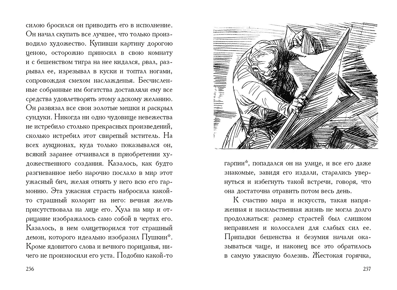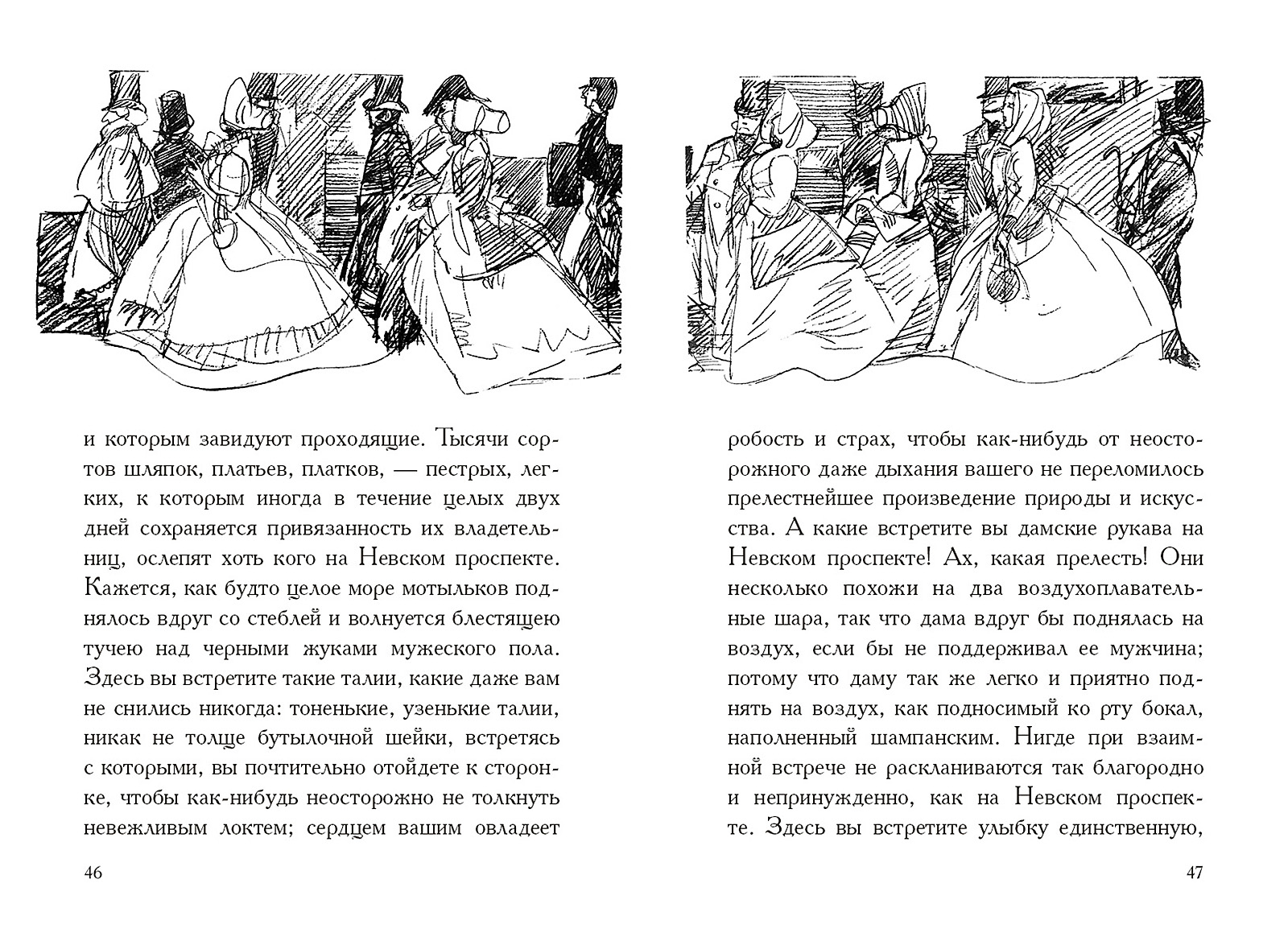 Повести Николая Гоголя (1809–1852), которые принято объединять в цикл «петербургских», не просто посвящены одному городу, но занимают исключительное место в творчестве писателя. «Невский проспект», «Нос», «Портрет», «Шинель» и «Записки сумасшедшего» во многом автобиографичны, насыщены социальной проблематикой и живой глубиной. Здесь оригинальность сюжетов и тонкий юмор усилены причудливостью и фантастичностью образов, поэтичность соседствует с острой правдивостью, а злободневность не теряет актуальности. Размышления о таланте и его погибели, о человеческом тщеславии, неуемности желаний и эгоизме, о красоте и ее обманчивости в современном автору мире — все это, облаченное в искусно легкий гоголевский слог, делает «петербургские повести» ни с чем не сравнимым и вневременным творением писателя.Характеры и образы повестей мастерски схвачены тонкими, динамичными штрихами иллюстраций Виталия Горяева, удостоенны Государственной премии СССР (1967). |