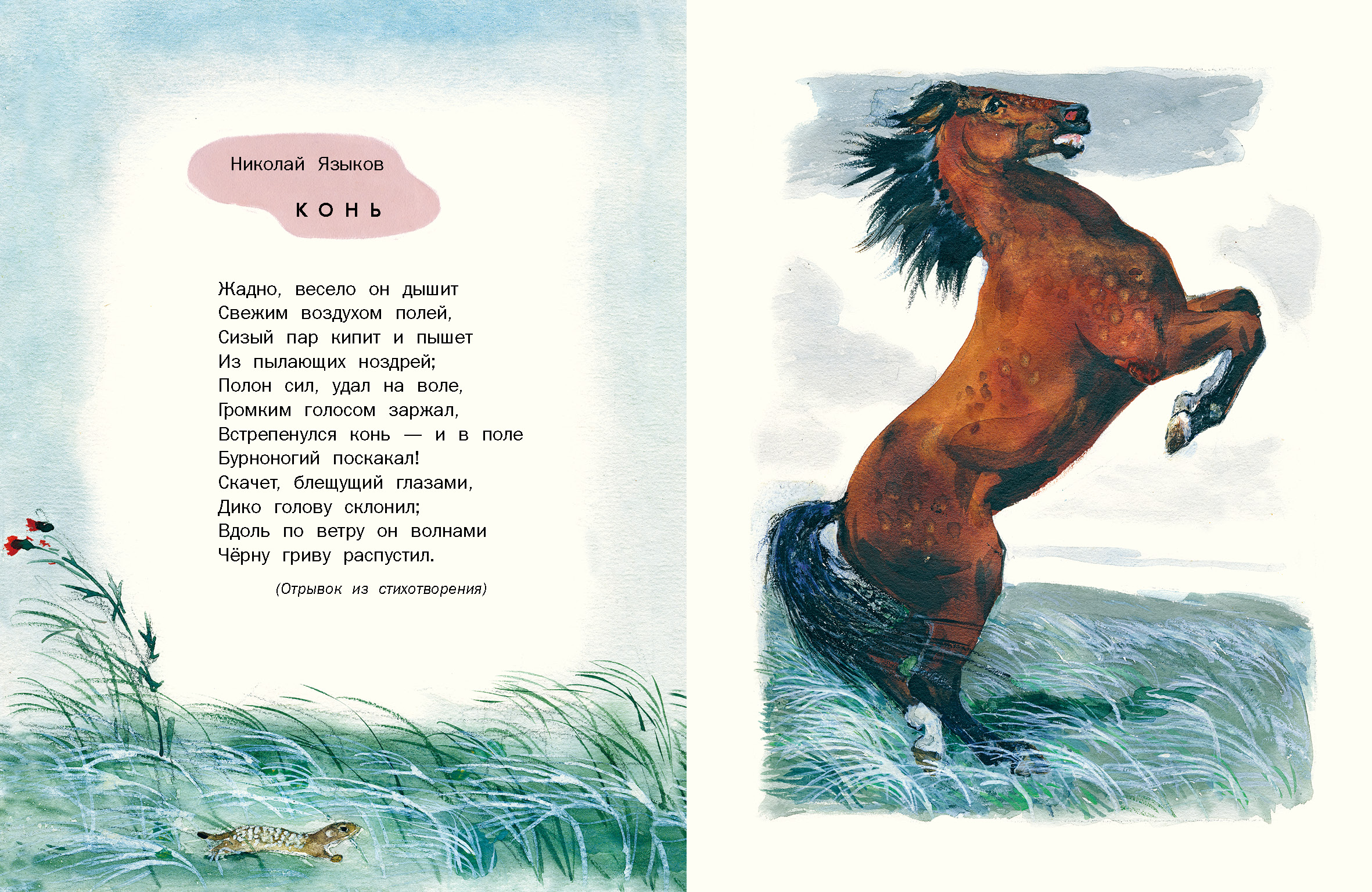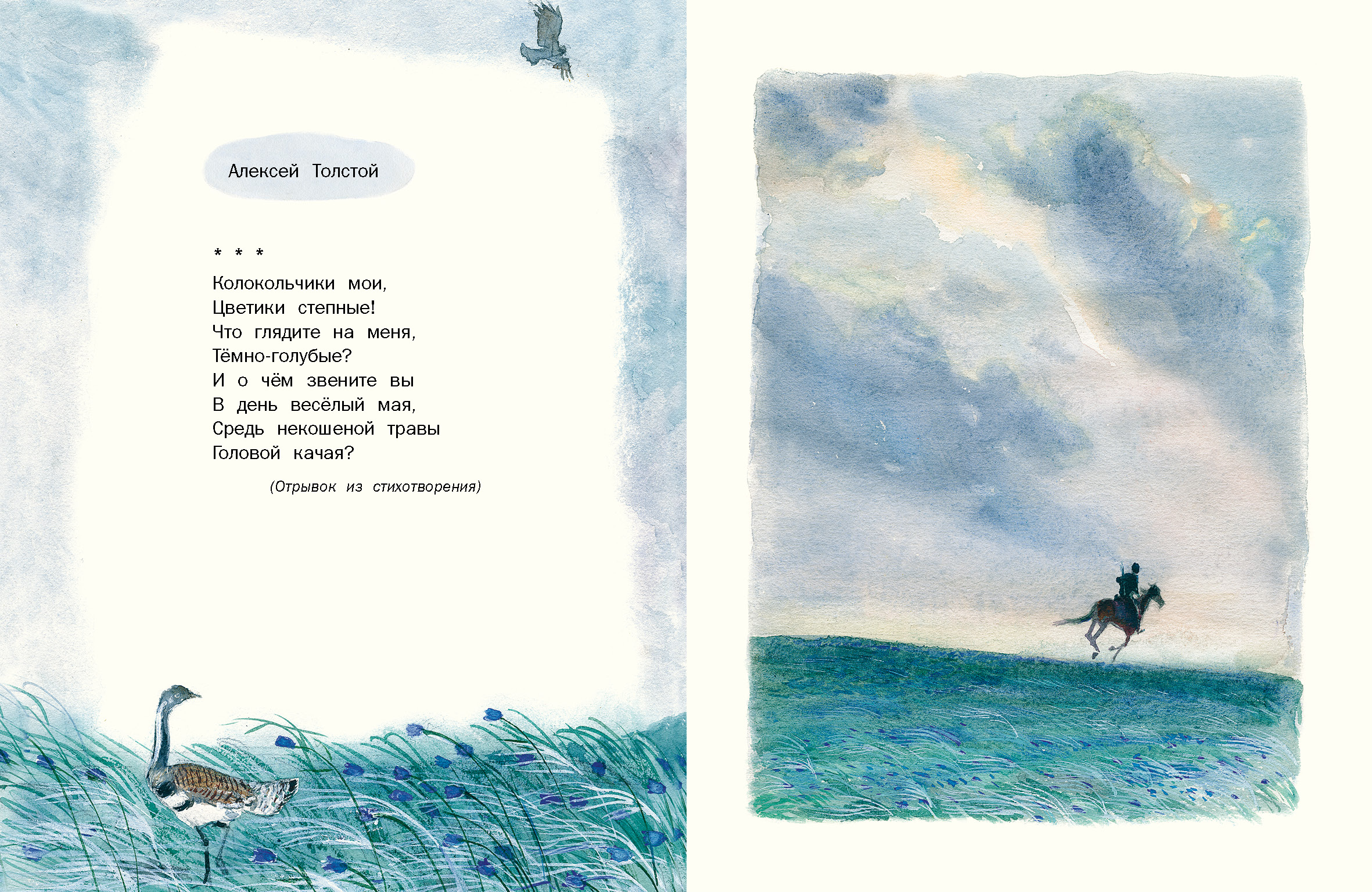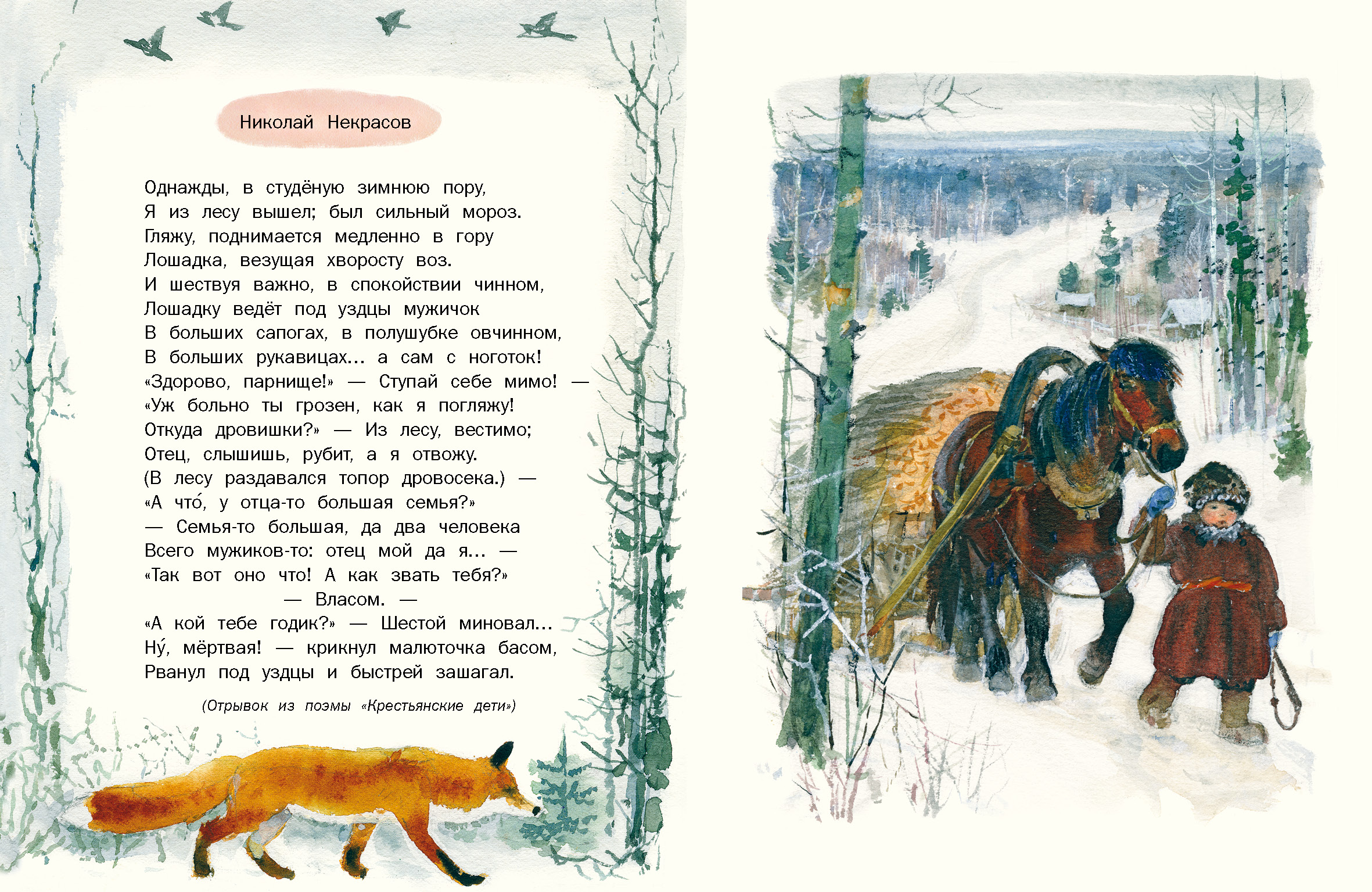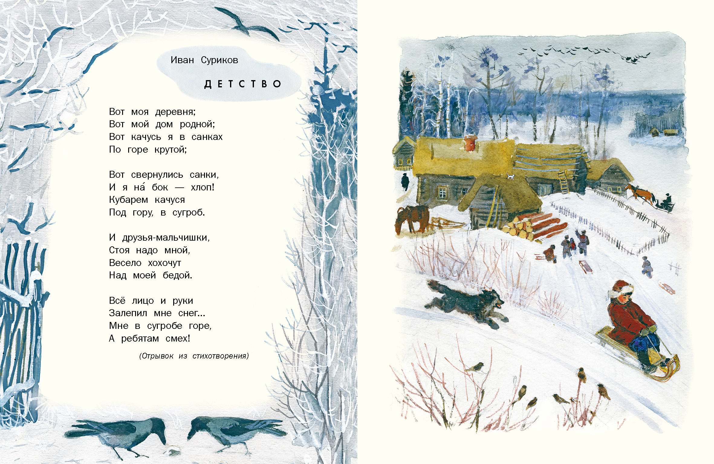 Маленьким детям. Стихи русских поэтов Красочный сборник стихотворений русских поэтов, адресованный самым маленьким читателям, только начинающим знакомство с русской литературой. Содержание: • Иван Суриков. "Детство" (Отрывок из стихотворения) • Александр Пушкин. "...Ель растёт перед дворцом" (Отрывок из «Сказки о царе Салтане, о сыне его славном и могучем богатыре князе Гвидоне Салтановиче и о прекрасной царевне Лебеди») • Александр Пушкин. "...Ветер по морю гуляет"(Отрывок из «Сказки о царе Салтане, о сыне его славном и могучем богатыре князе Гвидоне Салтановиче и о прекрасной царевне Лебеди») • Николай Языков. Конь (Отрывок из стихотворения) • Николай Некрасов. "...Однажды, в студёную зимнюю пору" (Отрывок из поэмы «Крестьянские дети») • Аполлон Майков. "Ласточка примчалась..." • Алексей Толстой. "Колокольчики мои..." (Отрывок из стихотворения) • Александр Блок. Зайчик |