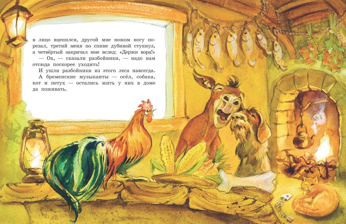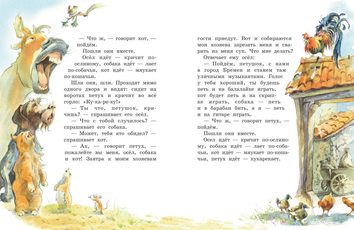 Весёлая и добрая сказка братьев Гримм знакомит с приключениями четырёх друзей-животных, которые решают стать уличными музыкантами и отправляются за удачей в город Бремен. Знаменитую историю пересказал поэт Александр Введенский, а яркие характеры героев воплотила в иллюстрациях художница Ольга Цурина. |